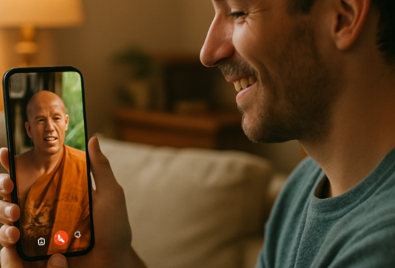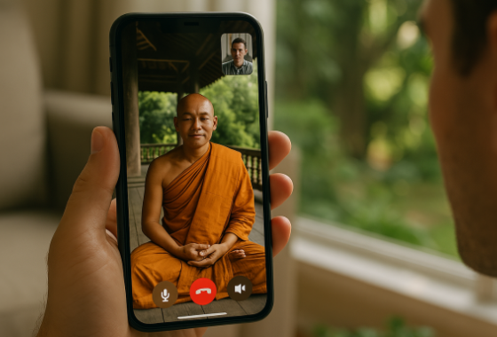 Connect with real Buddhist Monks for guidance, blessings, and inspiration through video calls.
